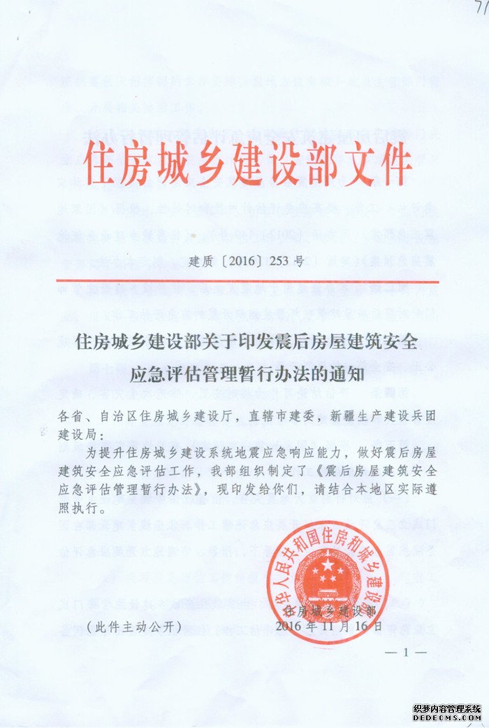 为进一步提升住房城乡建设系统地震应急响应能力,做好我市震后房屋建筑安全应急评估工作,现将《住房城乡建设部关于印发震后房屋建筑安全应急评估管理暂行办法的通知》转发给你们,请结合本地区实际遵照执行。