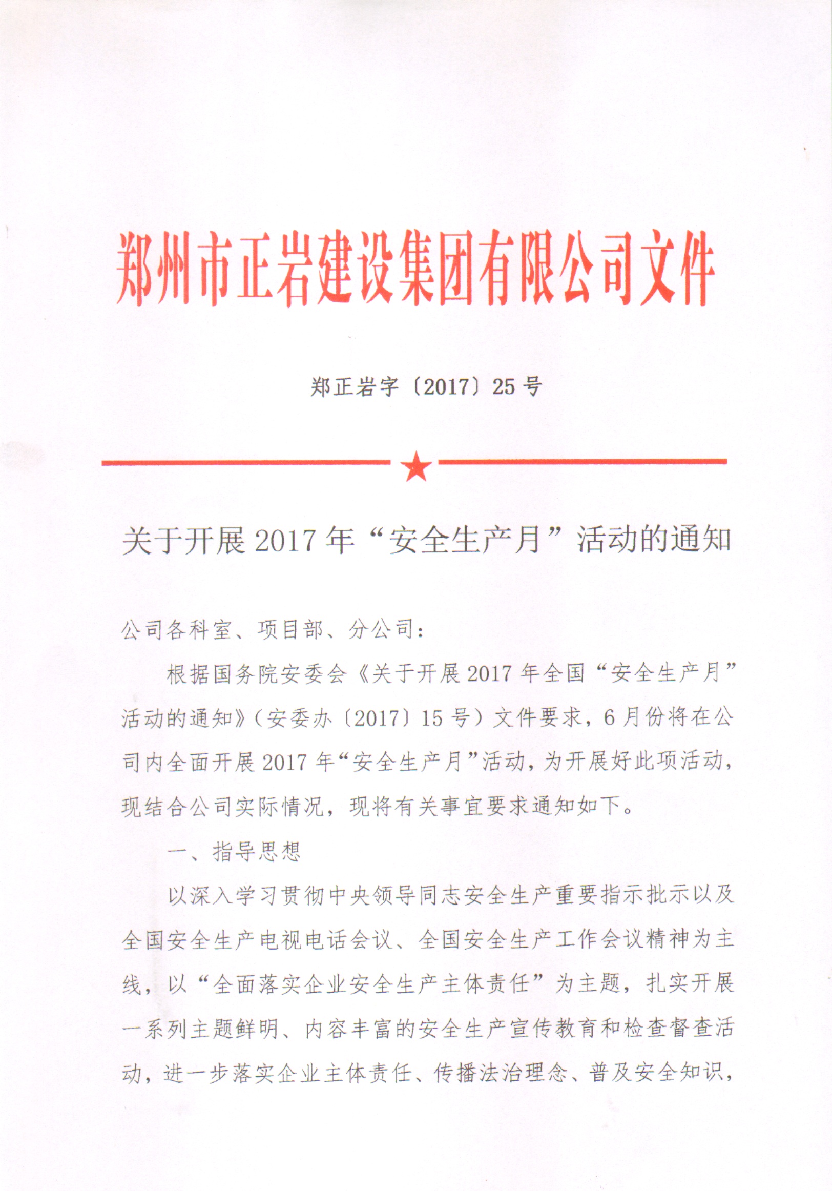 关于开展2017“安全生产月”活动的通知
