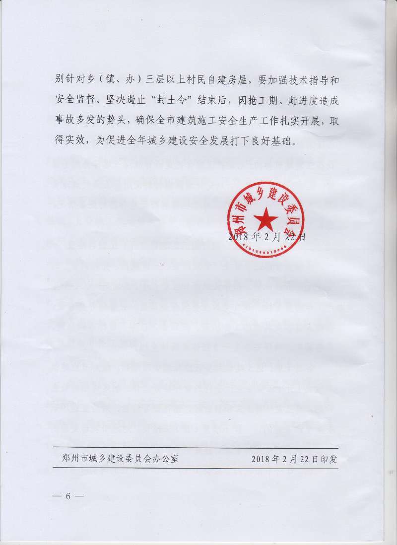 郑州市城乡建设委员会关于加强2018年春节后复(开)工建筑施工安全生产工作的通知