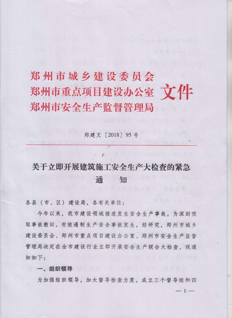 转发市建委《关于立即开展建筑施工安全生产大检查的紧急通知》