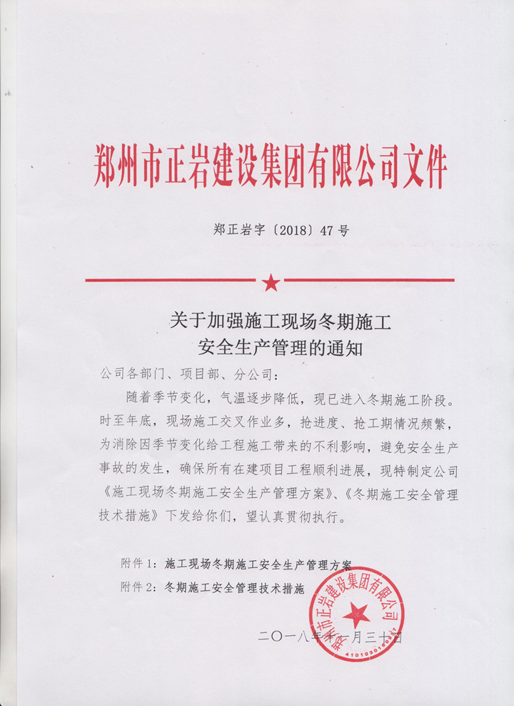 郑赌nba篮球正规官网字﹝2018﹞47号关于加强施工现场冬期施工安全生产管理的通知