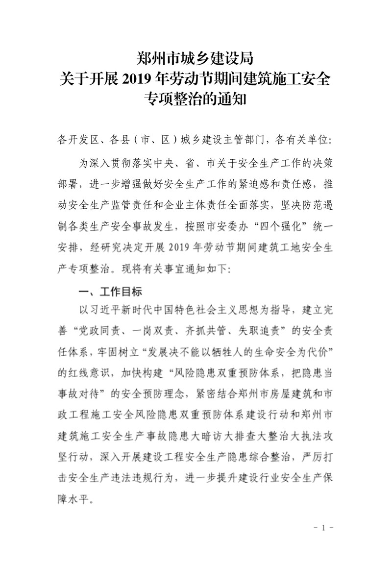 附件:郑州市城乡建设委员会关于开展关于开展2019年劳动节期间建筑施工安全专项整治的通知20190430.pdf