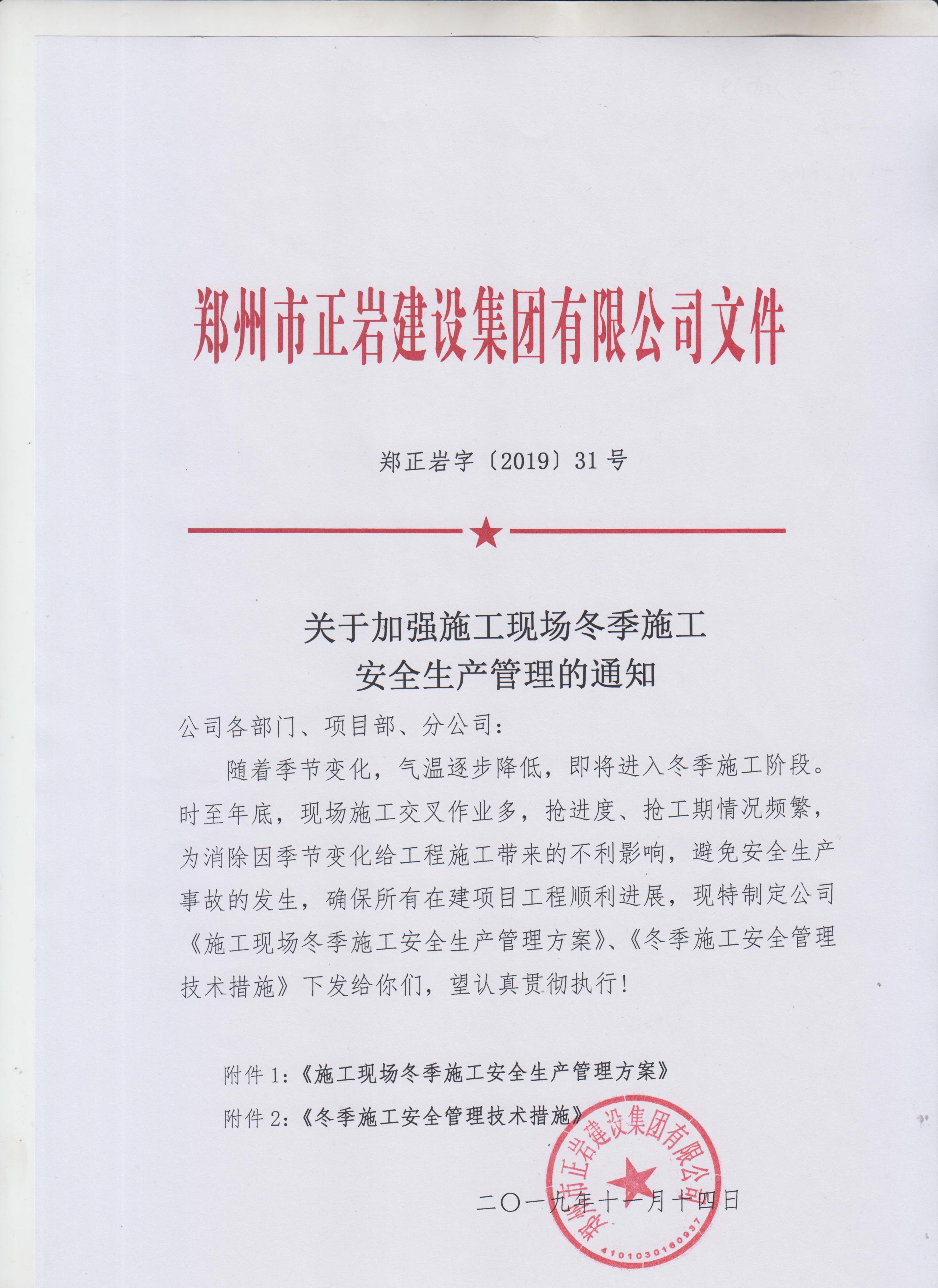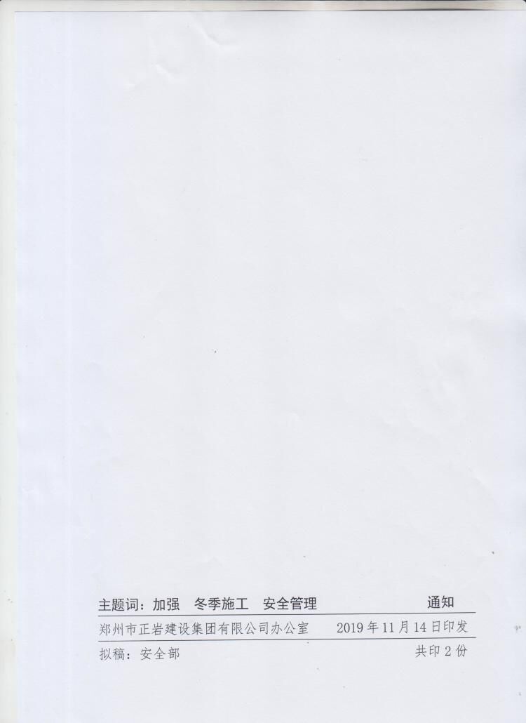 郑州市赌nba篮球正规官网建设集团有限公司关于加强施工现场冬季施工安全生产管理的通知