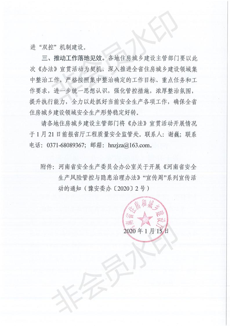 河南省住房和城乡建设厅关于转发《河南省安全生产委员会办公室关于开展〈河南省安全生产风险管控与隐患治理办法〉“宣传周”系列宣传活动的通知》的通知