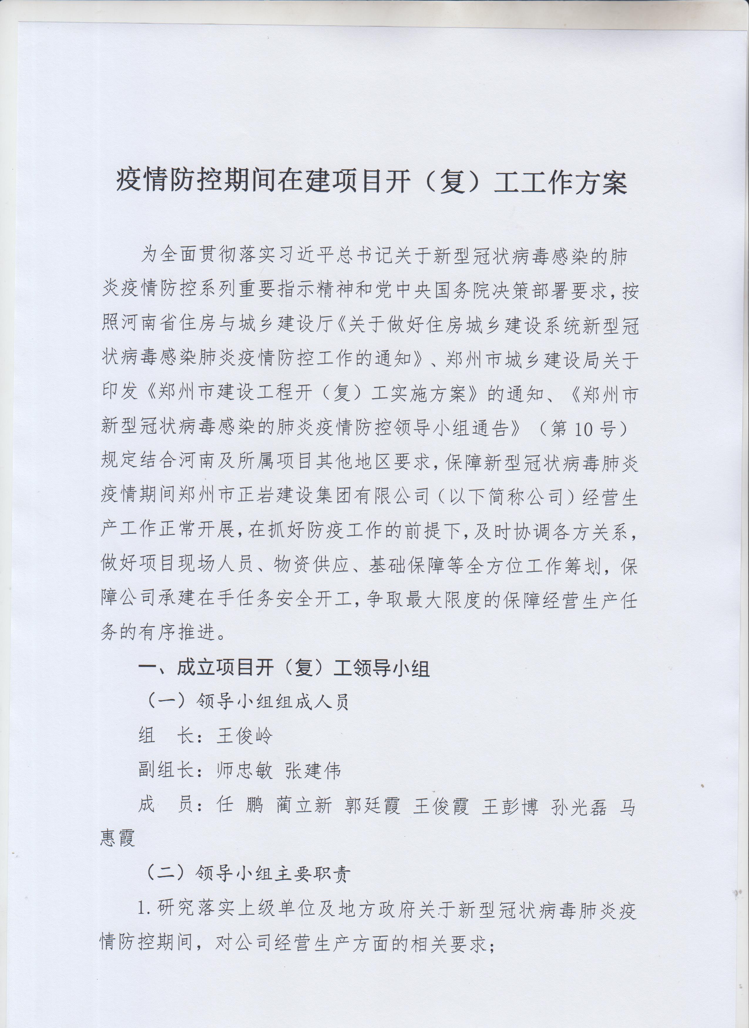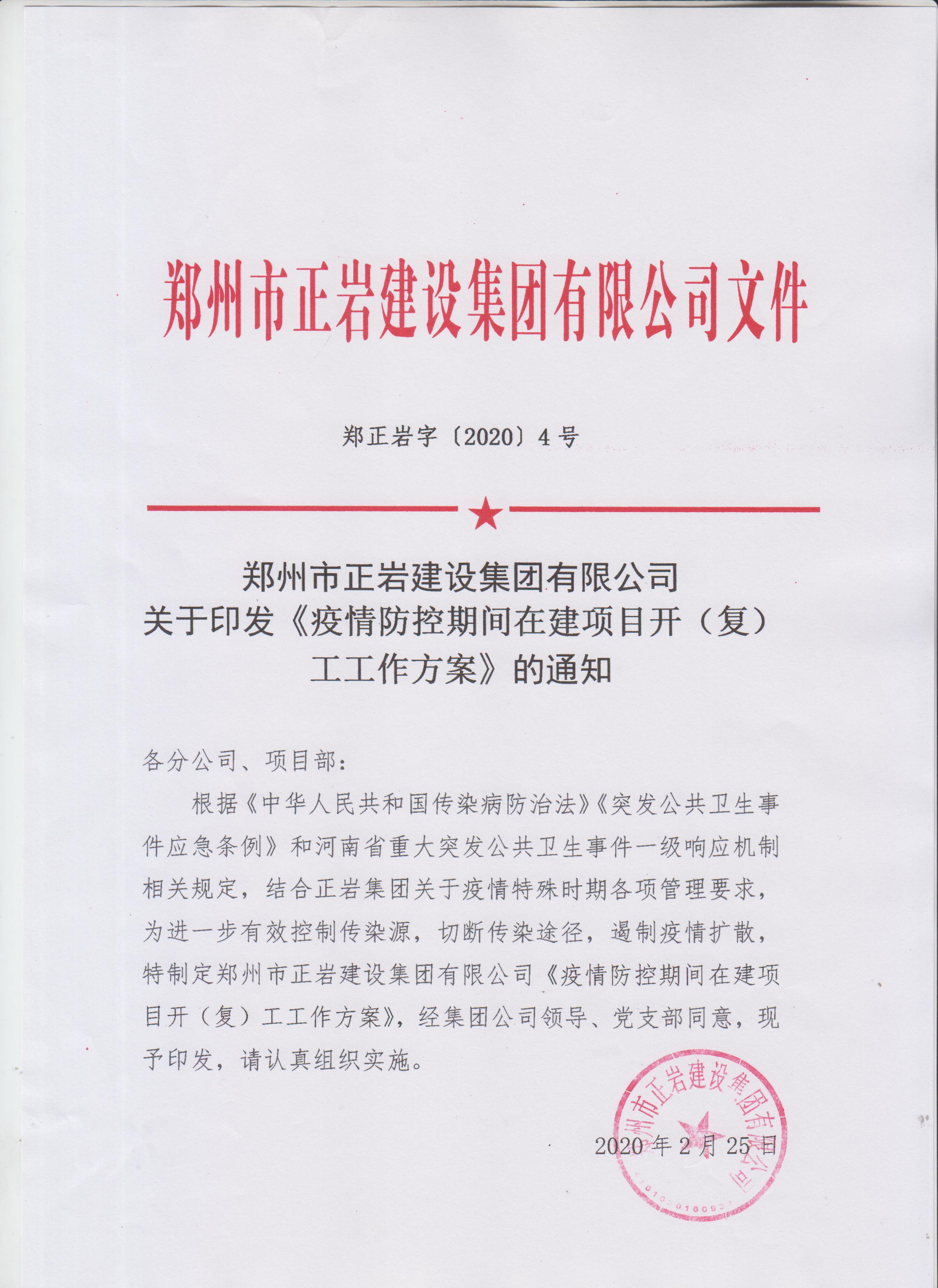 郑州市赌nba篮球正规官网建设集团有限公司关于印发《疫情防控期间在建项目开(复)工工作方案》的通知