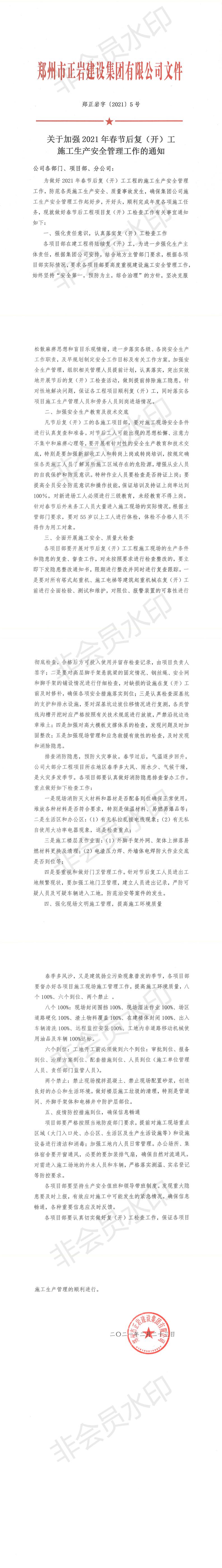 关于加强2021年春节后复(开)工施工生产安全管理工作的通知