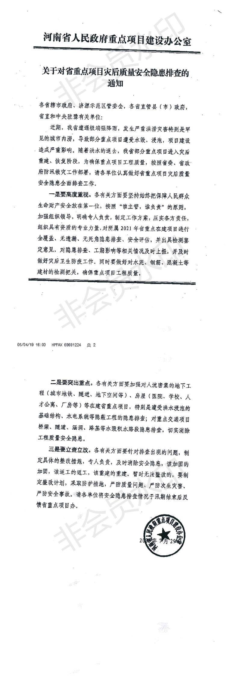 关于对重点项目灾后质量安全隐患排查的通知